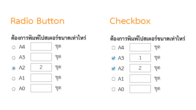 ซึ่งถ้าเป็นคำถามที่เลือกตอบเพียงข้อเดียว ช่องให้กาเครื่องหมายถูกจะมีลักษณะเป็นวงกลม หรือเรียกเป็นภาษาคอมพิวเตอร์ว่า Radio Button แต่ถ้าเป็นคำถามที่สามารถเลือกตอบได้มากกว่า 1 ข้อ ช่องให้กาเครื่องหมายถูกจะมีลักษณะเป็นสี่เหลี่ยม หรือเรียกเป็นภาษาคอมพิวเตอร์ว่า Checkbox ลองสังเกตดูนะครับ
