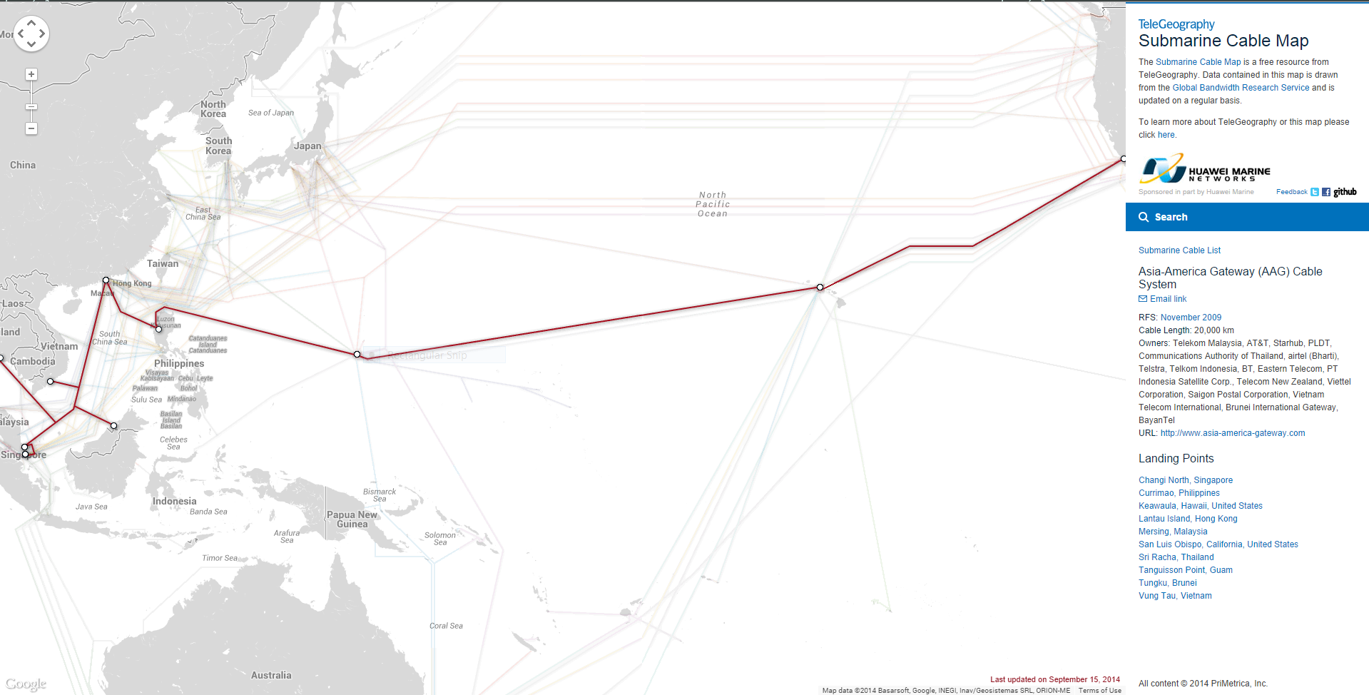 เมื่อเวลาประมาณห้าทุ่มกว่าๆ ของคืนวันที่ 15 กันยายนที่ผ่านมามีรายงานว่าสายเคเบิลใต้น้ำ AAG ที่เชื่อมโยงระหว่างภูมิภาคเอเชียตะวันออกเฉียงใต้และฮ่องกง ไปยังประเทศสหรัฐอเมริกาผ่านเกาะกวมและฮาวายชำรุดเสียหายบริเวณส่วนเชื่อมต่อระหว่างฮ่องกงมาทางภูมิภาคเอเชียตะวันออกเฉียงใต้ เคเบิลดังกล่าวมีความจุที่ออกแบบไว้สูงถึง 2.88 Tbps และมีการใช้งานอยู่ค่อนข้างมาก การชำรุดครั้งนี้ส่งผลให้อินเทอร์เน็ตในภูมิภาคเอเชียตะวันออกเฉียงใต้ช้าลงมากในหลายๆ ประเทศรวมถึงไทยด้วย ผู้ใช้หลายๆ รายในไทยก็พบว่าค่า latency เพิ่มสูงขึ้นและมีความเร็วลดลงจริง สายเคเบิลใต้น้ำเส้นนี้เคยมีประวัติชำรุดเมื่อกลางเดือนกรกฎาคมที่ผ่านมาแล้วครั้งหนึ่ง ในช่วงนั้นใช้เวลาซ่อมแซมถึง 2 สัปดาห์ แต่ครั้งนี้ก็คาดว่าน่าจะใช้เวลาประมาณ 2 สัปดาห์ หากอินเทอร์เน็ตช้า อย่าเพิ่งโทรไปโวยวายผู้ให้บริการนะครับ ^^