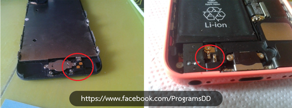 แอดมินก็สงสัยเหมือนกันว่า ลักษณะการประกอบของปุ่มโฮม มันไม่มีสายส่งข้อมูล และการถอดออกมานั้นง่ายดาย แต่ถ้าเราสังเกตดีดีแล้ว เราจะเห็นทองแดงยื่นออกมา บริเวณ Lightning Connector ดังภาพ